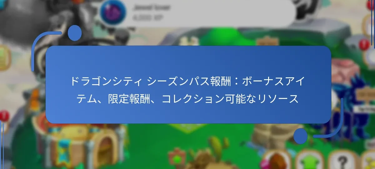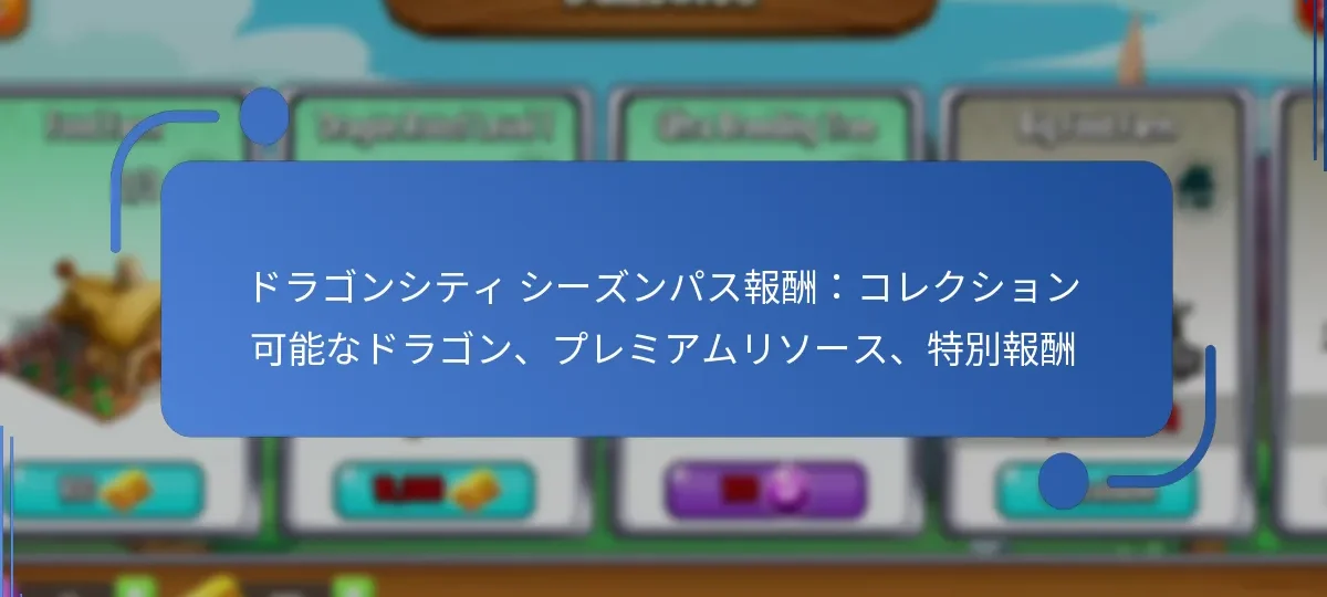 ドラゴンシティのシーズンパスは、コレクション可能なドラゴン、プレミアムリソース、ゲームプレイを向上させる独占アイテムなど、魅力的な報酬の数々を提供します。シーズンパスに投資することで、プレイヤーは戦略的な利点を提供するユニークなドラゴンをアンロックし、金、宝石、クラフト材料などの貴重なリソースにアクセスできます。これらの報酬は、ゲーム体験を豊かにするだけでなく、プレイヤーがより効果的に課題に取り組むのを助けます。 ドラゴンシティのシーズンパスの主な報酬は何ですか? ドラゴンシティのシーズンパスは、コレクション可能なドラゴン、プレミアムリソース、特別な独占アイテムなど、さまざまな報酬をプレイヤーに提供します。これらの報酬はゲームプレイを向上させ、ユニークな利点を提供するため、シーズンパスは熱心なプレイヤーにとって価値のある投資となります。 コレクション可能なドラゴンとそのユニークな能力 シーズンパスには、ゲームプレイに大きな影響を与える独特の能力を持つコレクション可能なドラゴンがいくつか登場します。プレイヤーは、戦闘や繁殖に戦略的に使用できる火、水、地のような元素の力を持つドラゴンを見つけることが期待できます。 例えば、攻撃力を増加させる能力を持つドラゴンや、防御上の利点を提供するドラゴン、リソース生産を向上させるドラゴンなどがいます。これらのドラゴンを集めることで、プレイヤーのロースターが多様化するだけでなく、競技においてより効果的なチーム構成が可能になります。 火のドラゴン – 攻撃ダメージを一定の割合で増加させる。 水のドラゴン – リソース収集率を向上させる。 地のドラゴン – 戦闘中に防御ボーナスを提供する。 プレミアムリソースとその利点 シーズンパスは、ドラゴンシティでの進行に不可欠なプレミアムリソースへのアクセスを提供します。これらのリソースには、ドラゴンのアップグレード、ハビタットの建設、新機能のアンロックに使用できる宝石、食料、金が含まれます。 例えば、宝石はプロセスを迅速化する貴重な通貨であり、食料はドラゴンのレベルアップに不可欠です。シーズンパスを通じてこれらのリソースを蓄積することで、より強力で競争力のあるドラゴンコレクションを得ることができます。 特別な報酬と独占アイテム プレイヤーは、シーズンパスを通じて、通常のゲームプレイでは得られない特別な報酬や独占アイテムを獲得することもできます。これらのアイテムには、ユニークなドラゴンスキン、特別な繁殖アイテム、プレイヤーの都市を向上させる期間限定の装飾が含まれることがあります。 独占アイテムは、独自のデザインや機能を持つことが多く、プレイヤーに達成感やゲームプレイ体験のパーソナライズを提供します。これらの報酬は、コミュニティ内でのステータスシンボルとしても機能します。 シーズンパスの期間と入手可能性 ドラゴンシティのシーズンパスは通常数ヶ月間有効で、プレイヤーは報酬を獲得するための十分な時間があります。この期間中、プレイヤーはさまざまな課題やミッションを完了してパスの完全な潜在能力をアンロックできます。 入手可能性はゲームのアップデートや季節イベントによって異なる場合があるため、プレイヤーはパスの購入機会を逃さないように発表に注意を払うべきです。 シーズンパスのコスト ドラゴンシティのシーズンパスのコストは、一般的に合理的な価格設定で、通常は10ドルから15ドルの範囲です。この投資により、ゲームプレイを大幅に向上させる豊富な報酬にアクセスできます。 プレイヤーは、パスを購入する際に提供される報酬の価値を考慮すべきです。コレクション可能なドラゴンやプレミアムリソースなどの潜在的な利点は、初期コストを上回ることが多く、熱心なプレイヤーにとって価値のある追加となります。 アイテム コスト (USD) 入手可能性 シーズンパス $10 – $15 期間限定 コレクション可能なドラゴンはどのようにゲームプレイを向上させますか? コレクション可能なドラゴンは、ユニークな能力やシナジーを提供することで、ゲームプレイを大幅に向上させます。これらのドラゴンは、ロースターに多様性を加えるだけでなく、プレイヤーが課題により効果的かつ効率的に取り組むことを可能にします。 コレクション可能なドラゴンのユニークな能力 各コレクション可能なドラゴンは、戦闘やリソース管理に影響を与えるユニークな能力を持っています。例えば、特定の相手に対して追加ダメージを与えることができる元素的な利点を持つドラゴンもいれば、チームにバフを提供し、戦闘中の攻撃力や防御力を増加させるドラゴンもいます。 さらに、コレクション可能なドラゴンは、通常のドラゴンにはない特別なスキルをアンロックすることができます。これらのスキルには、回復、エリアダメージ、さらには群衆制御効果が含まれ、戦闘の流れ