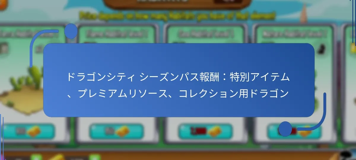 ドラゴンシティシーズンパスは、特別なアイテム、プレミアムリソース、コレクション可能なドラゴンなど、さまざまな主な報酬をプレイヤーに提供します。これらの報酬はゲームプレイを向上させ、プレイヤーがゲームを進める際にユニークな利点を提供します。